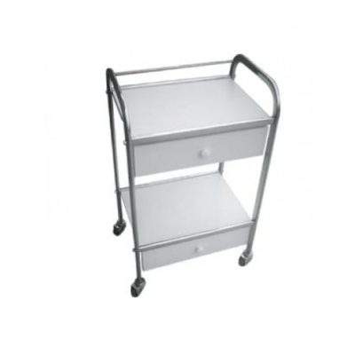 Τραπέζι τροχήλατο χρωμίου με 2 ράφια μελαμίνης και 2 συρτάρια 0.40×0.50×0,90m.