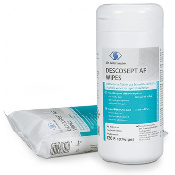 - Τα Descosept AF wipes είναι έτοιμα προς χρήση αλκοολούχα ανταλλακτικά μαντηλάκια απολύμανσης, χωρίς αλδεϋδες με βάση την αιθανόλη και ενώσεις τεταρτογενούς αμμωνίου.