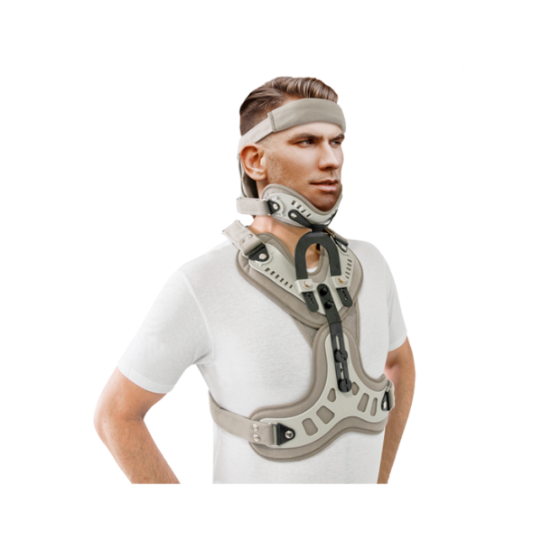 Φέρει ενσωματωμένο μετωπιαίο ιμάντα ακινητοποίησης της κεφαλής. Το πρόσθιο τμήμα στήριξης της κάτω γνάθου καθώς και το οπίσθιο του ινιακού οστού ρυθμίζονται σε θέσεις επιλογής (αυξομείωση ύψους). Το υποσιάγωνο αφαιρείται εύκολα διευκολύνοντας τον ασθενή στη σίτιση. Η δυνατότητα αφαίρεσης του θωρακικού και ραχιαίου τμήματος επιτρέπει την αυτονομία του αυχενικού νάρθηκα (στην κρίση του θεράποντα ιατρού). Ο νάρθηκας εφαρμόζεται και σε ύπτια θέση.
