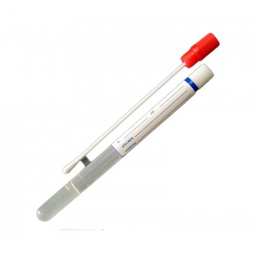 Βαμβακοφόροι εντός σωληναρίου με ξύλινη ράβδο και βαμβακερή κορυφή. Μη τοξικοί, αποστειρωμένοι με υλικό μεταφοράς Stuart.