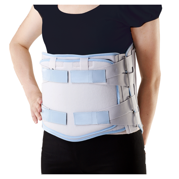 - Υψηλός νάρθηκας οσφύος, ανατομικά διαμορφωμένος με πρόσθια και οπίσθια άκαμπτα τμήματα στήριξης και αποφόρτισης των θωρακοοσφυϊκών σπονδύλων.