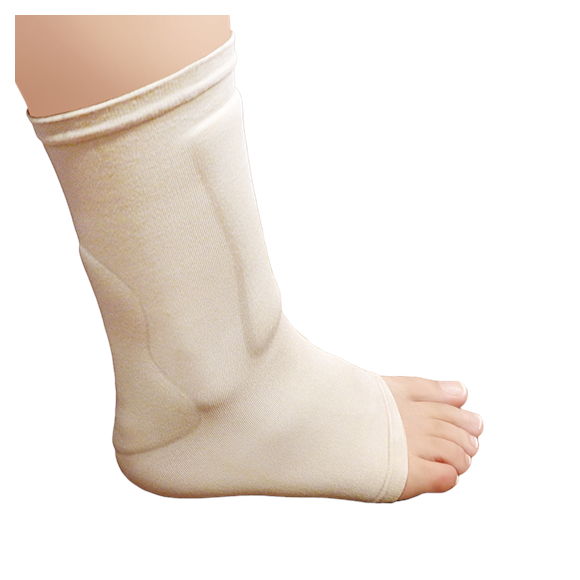 - Μαλακή κάλτσα ανοικτών δακτύλων, με δύο επιθέματα από πολυμερές μαλακό gel 2mm (στην κνήμη και τον αχίλλειο τένοντα).