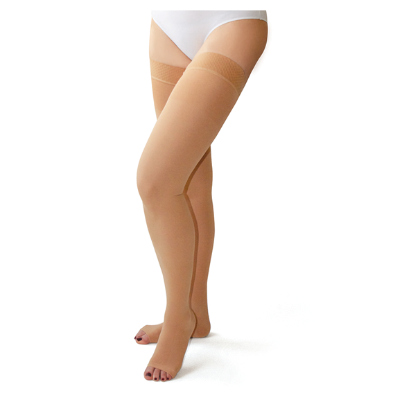 • Ελαστικές κάλτσες διαβαθμισμένης συμπίεσης με κλειστή πτέρνα και ανοικτά δάκτυλα.