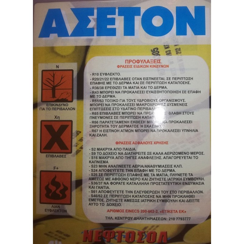 Καθαρό Ασετόν 1 Λίτρο ΝΕΦΤΟΣΟΛ.