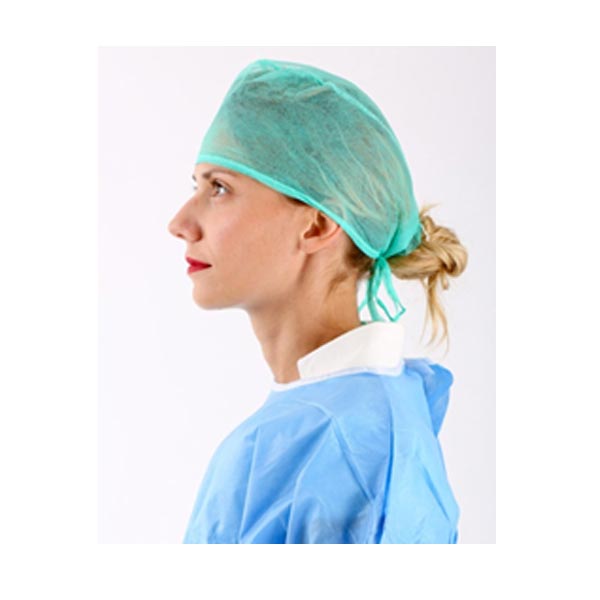 Καπελάκια γιατρών με κορδόνια για να καλύπτει πλήρως το τριχωτό της κεφαλής από non woven πράσινο.
