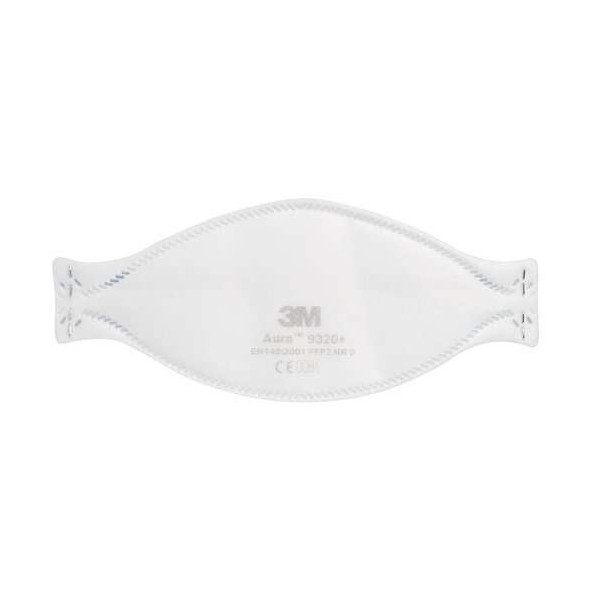 Η 3M™ Aura™ Μάσκα Σωματιδίων 9320+ παρέχει προστασία της αναπνοής FFP2, με αναδιπλούμενο σχεδιασμό 3 πάνελ, χαμηλή αντίσταση κατά την αναπνοή και ανάγλυφο, διαμορφωμένο άνω πάνελ, που συμβάλλει στη μείωση του θαμπώματος των γυαλιών. Διαθέτει μια πρωτοποριακή γλωττίδα στο σαγόνι για εύκολη προσαρμογή, καθώς και χρωματικά κωδικοποιημένα λάστιχα για γρήγορη και εύκολη αναγνώριση.