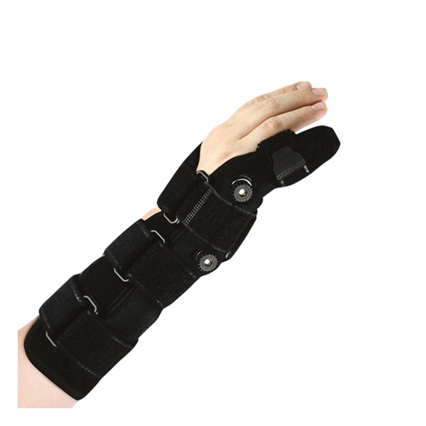 - Διαθέτει τέσσερεις ρυθμιζόμενους ιμάντες για την ακινητοποίηση των μετακαρπίων και των φαλαγγοφαλαγγικών αρθρώσεων.