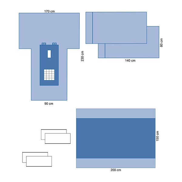 - Κάλυμμα κυστεοσκόπησης σχήματος Τ, 170*230 εκ., οπή 8*15 εκ., απορροφητική ενίσχυση, στηρίγματα σωλήνων αναρρόφησης και καλωδίων διαθερμίας, πλέγμα διήθησης 30*30 εκ.
