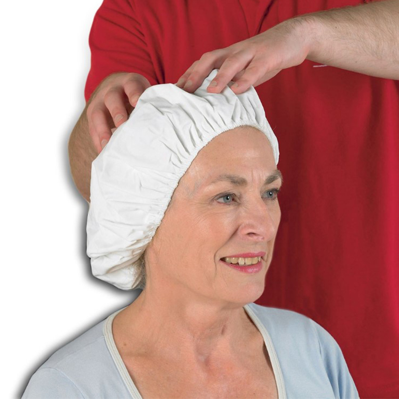 Το σκουφάκι λουσίματος είναι ο πιο εύκολος και αποτελεσματικός τρόπος για να λούσετε το κεφάλι του ασθενή χωρίς κόπο και χωρίς ταλαιπωρία. Φορέστε το σκούφο στον ασθενή και κάντε ελαφρό μασάζ. Σε 2 μόλις λεπτά έχετε τελειώσει, χωρίς την χρήση νερού ή σαμπουάν. Μπορείτε να στεγνώσετε τα μαλλιά του ασθενή με μια πετσέτα.