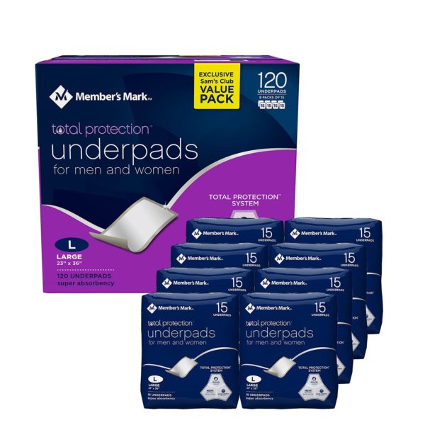 Υποσέντονο Ενηλίκων Member’s Mark Total Protection Underpads Large 60cm x 90cm 120τμχ.