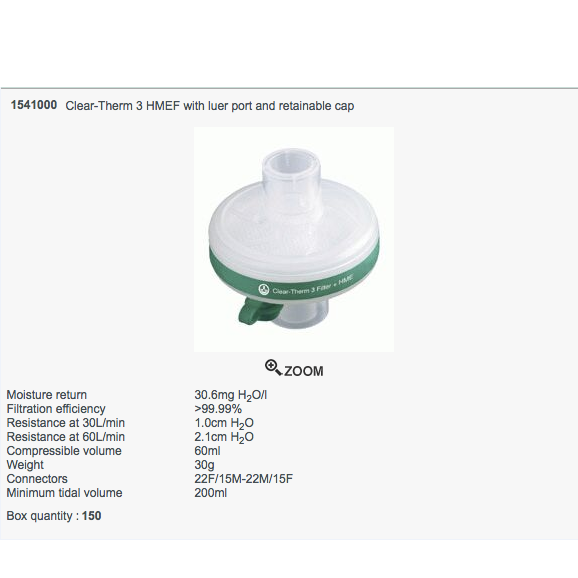 | 1541000 | ΦΙΛΤΡΟ CLEAR THERM 3 HMEF 22F/15M – 22M/15F + ΥΠΟΔΟΧΗ LUER LOCK ΚΑΠΝΟΓΡΑΦΙΑΣ | 30,6mg H2O/L | 2,6cm H2O | 60,0ml | 31,0g | 150 τεμ/κουτί |