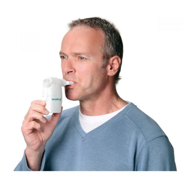Με τη χρήση της συσκευής ταλάντωσης PEP Aerobika*, δημιουργούνται ταλαντώσεις αντίστασης κατά την εκπνευστική κίνηση. Αναλυτικότερα, ο χρήστης εκπνέει μέσω αντίστασης, δημιουργώντας έτσι μια θετική πίεση η οποία επιτρέπει στη ροή του αέρα να μετακινηθεί προς τους αποφραγμένους αεραγωγούς και ως εκ τούτου να τους διατηρεί ανοικτούς. Η μοναδικότητα της συσκευής έγγυται στο συνδυασμό της θετικής πίεσης με τη δημιουργία “ταλαντώσεων” εντός των αεραγωγών, απομακρύνοντας τη βλέννη, ακόμη και τις πιο παχύρευστες εκκρίσεις.