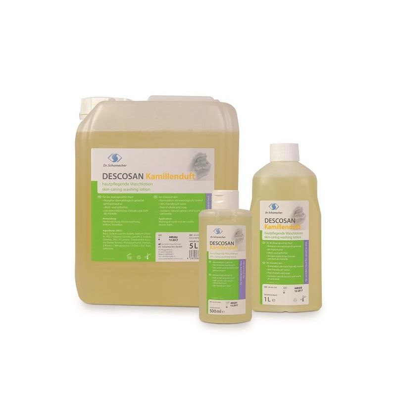 Το σαπούνι Descosan Kamillenduft από την Dr. Schumacher Γερμανίας είναι ένα διαφανές, ήπιο καθαριστικό υγρό δέρματος, με ουδέτερο ph το οποίο ενδείκνυται για συχνό και εντατικό καθαρισμό.